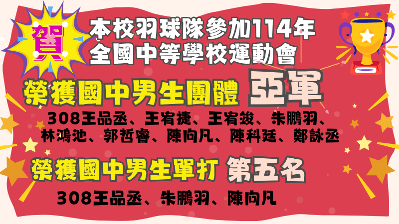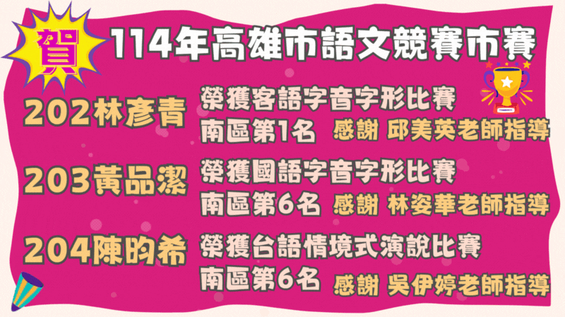 教務處:恭喜本校高雄市語文競賽市賽成績優異