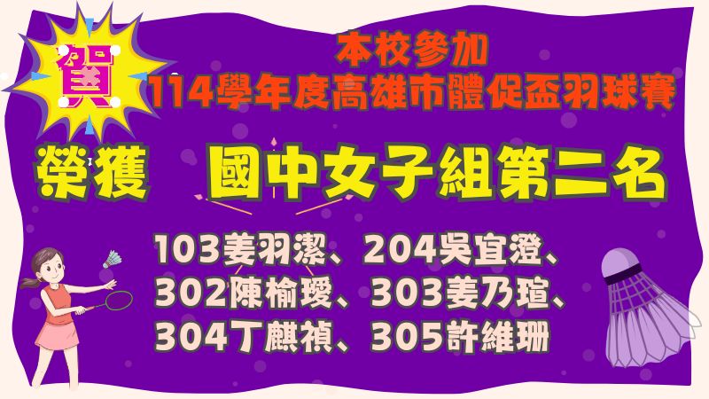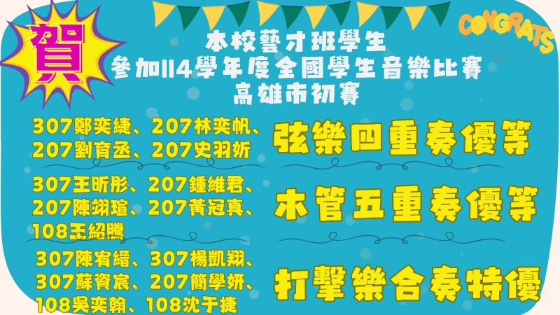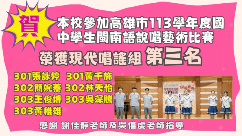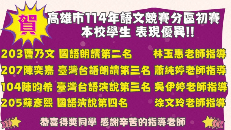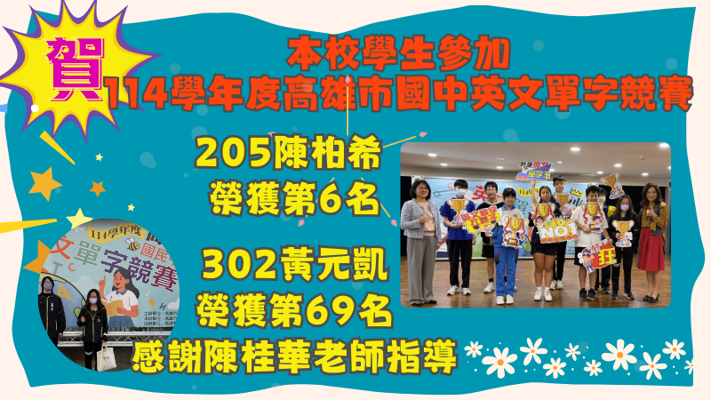 教務處:賀!本校學生參加114學年度高雄市國 ...