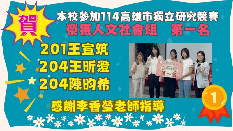 輔導室:賀!本校榮獲114高雄市獨立研究競賽 ...