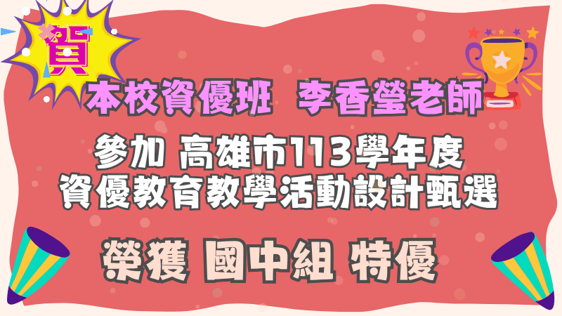 輔導室:賀! 李香瑩老師榮獲高雄市113學年 ...